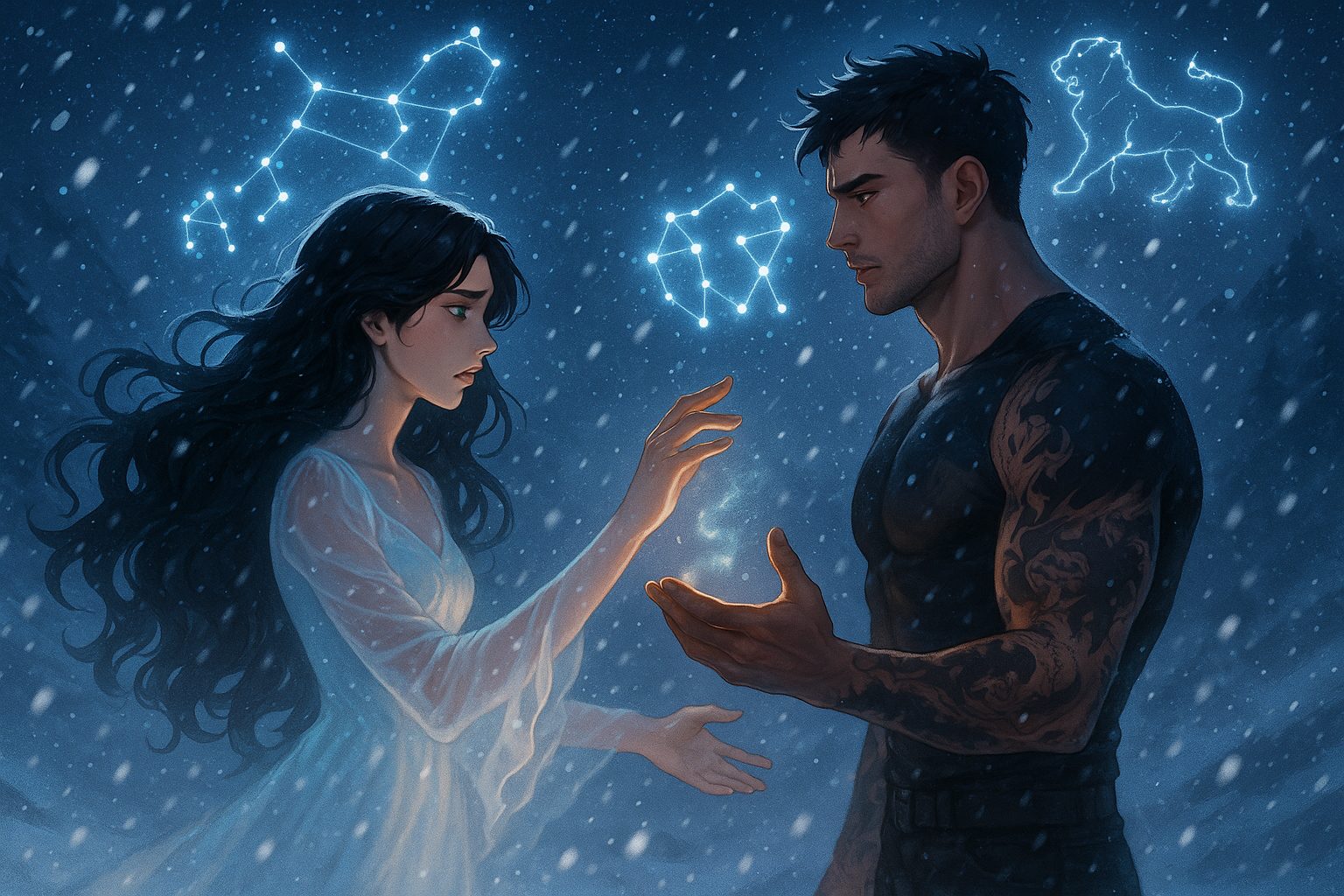 The story culminates in two parallel events. First, Tory and Darius experience their Divine Moment during a snowstorm, where the stars align their constellations (Leo and Gemini) for their fated meeting. Despite Darius’s pleas and confessions, Tory chooses to reject the fated bond, resulting in them becoming Star Crossed, marked by black rings around their pupils.