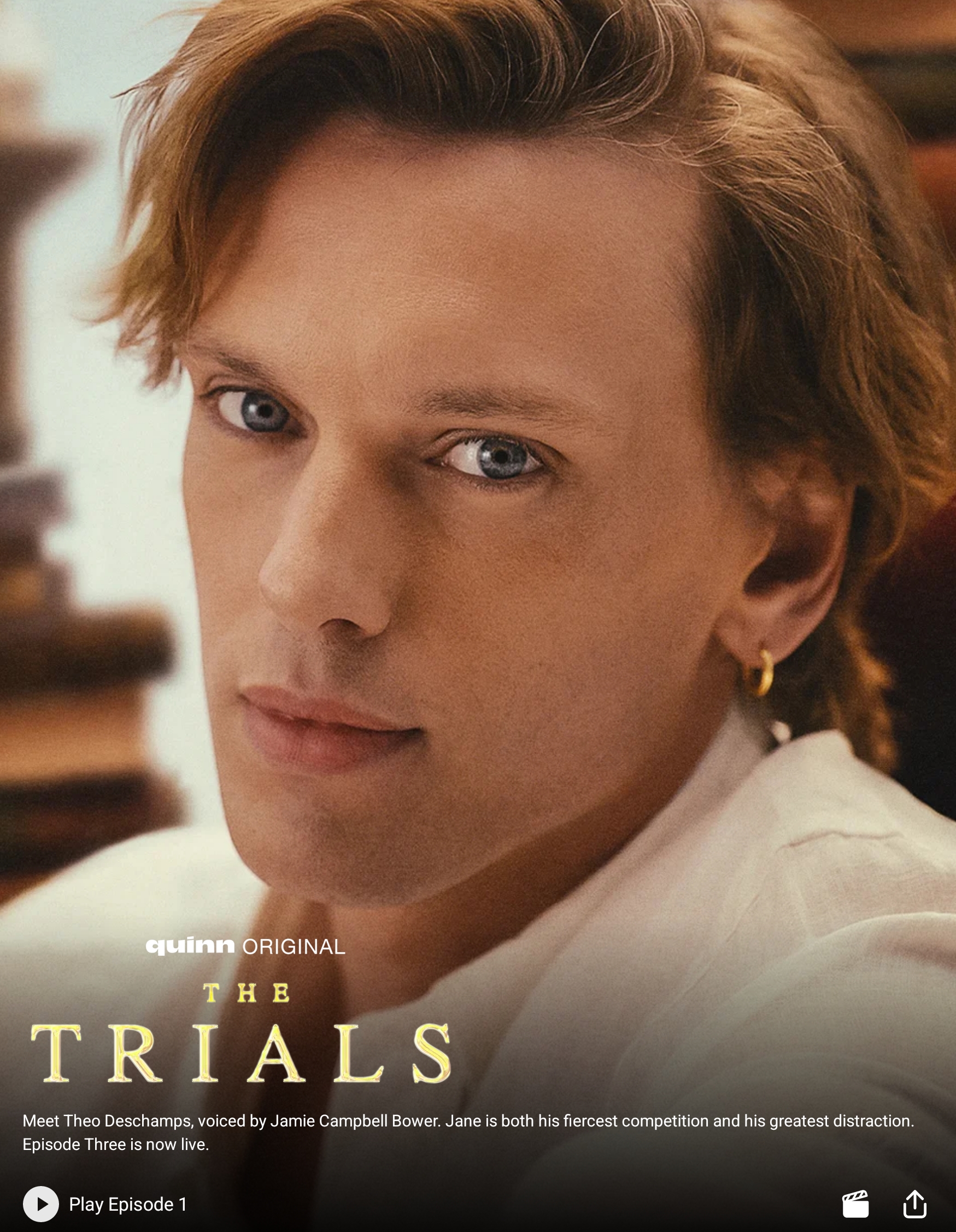 Jamie Campbell Bower narrates “The Trials” on Quinn. Yes, it’s as intense as you’re imagining.